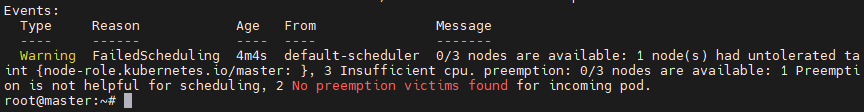 뭐 이런식으로 pod yaml에 cpu를 초과하게 설정해놨고