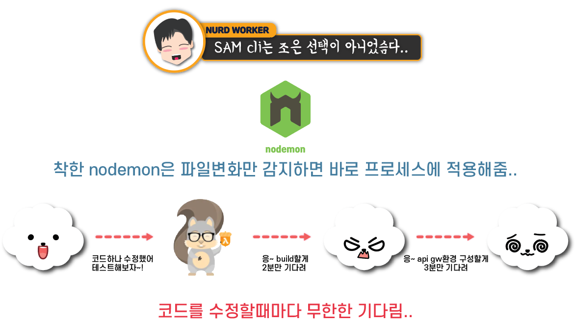 때문에 위에 명령어들 줄줄히 적어놓은게 어떻게든 sam cli를 활용해서 개발을 하려고 발버둥쳤던 흔적입니다..